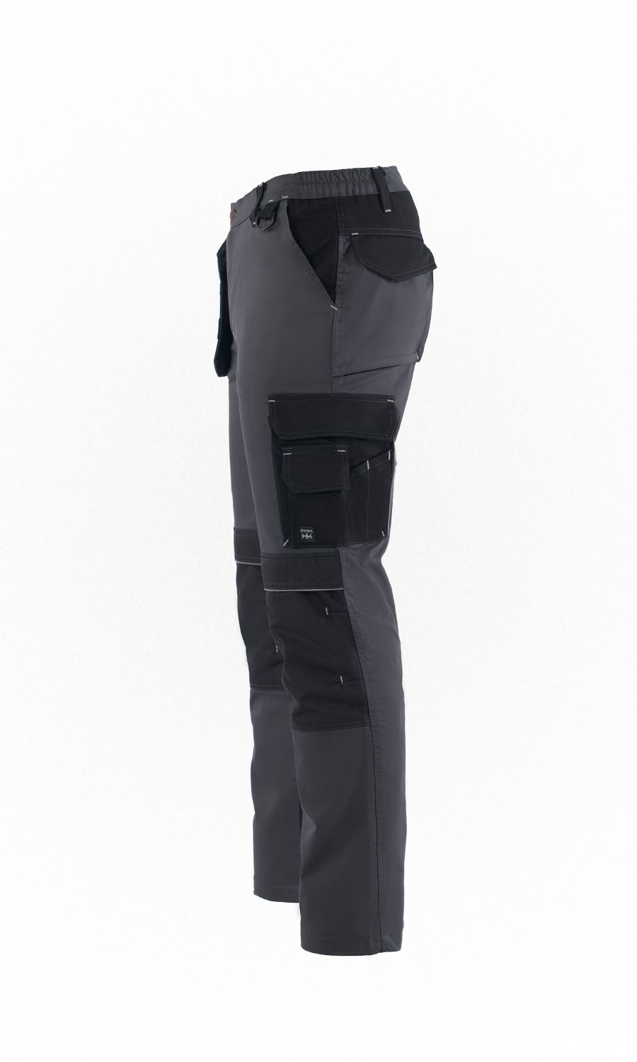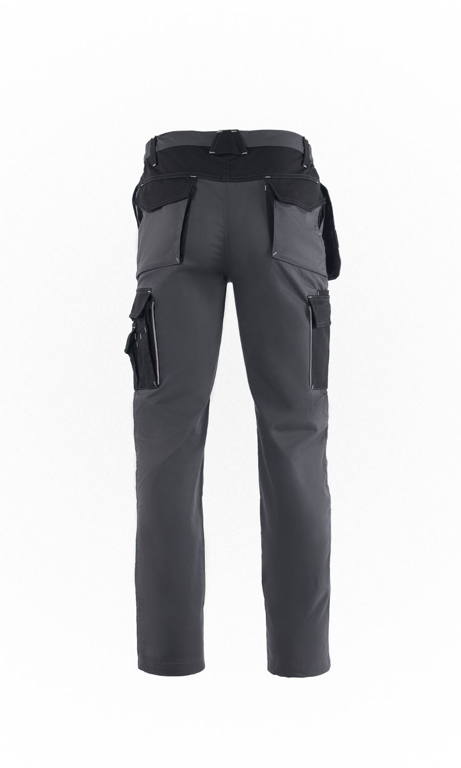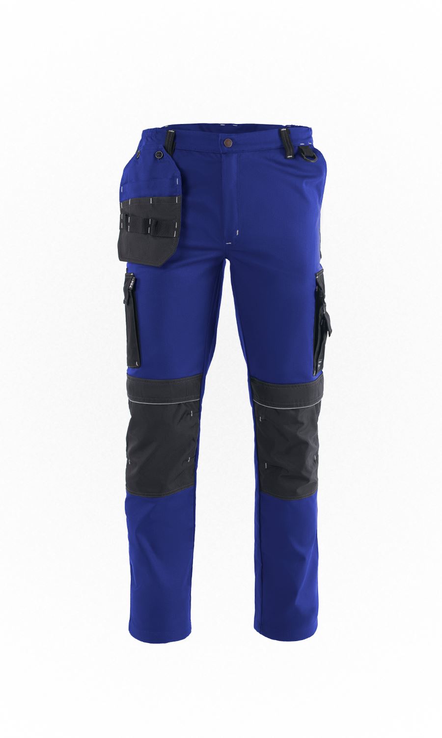 Ελαστικό, εργατικό παντελόνι που κλείνει μπροστά με φερμουάρ υψηλής αντοχής και μεταλλικό κουμπί. Διπλή πλαϊνή τσέπη στον αριστερό μηρό και διπλή στο δεξιό μηρό που κλείνουν με καπάκι και velcro. Οι τσέπες φέρουν ανακλαστικά σιρίτια. Δύο τσέπες λοξές μπροστά και δύο τσέπες πίσω με καπάκι. Αποσπώμενη θήκη εργαλείων. Θήκη για επιγονατίδες με ανακλαστικά σιρίτια. Πέντε θηλύκια για συγκράτηση ζώνης. Γαζιά ασφαλείας. Κρίκος πρόσδεσης εργαλείων. Ελληνικό προϊόν.